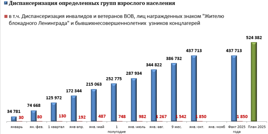 Выполнение плановых показателей по всем видам диспансеризации2025 год
